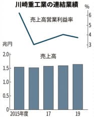 川崎重工業は2021年10月に二輪車・鉄道車両などの部門を分社することを柱とする事業方針を2日発表した。21年4月には船舶事業とプラント事業を統合。新型コロナウイルスで受注が減る航空機部品部門は600人削減する。改革で売上高営業利益率を現在の約2倍の8%とする計画だが道筋に不透明感も漂う。